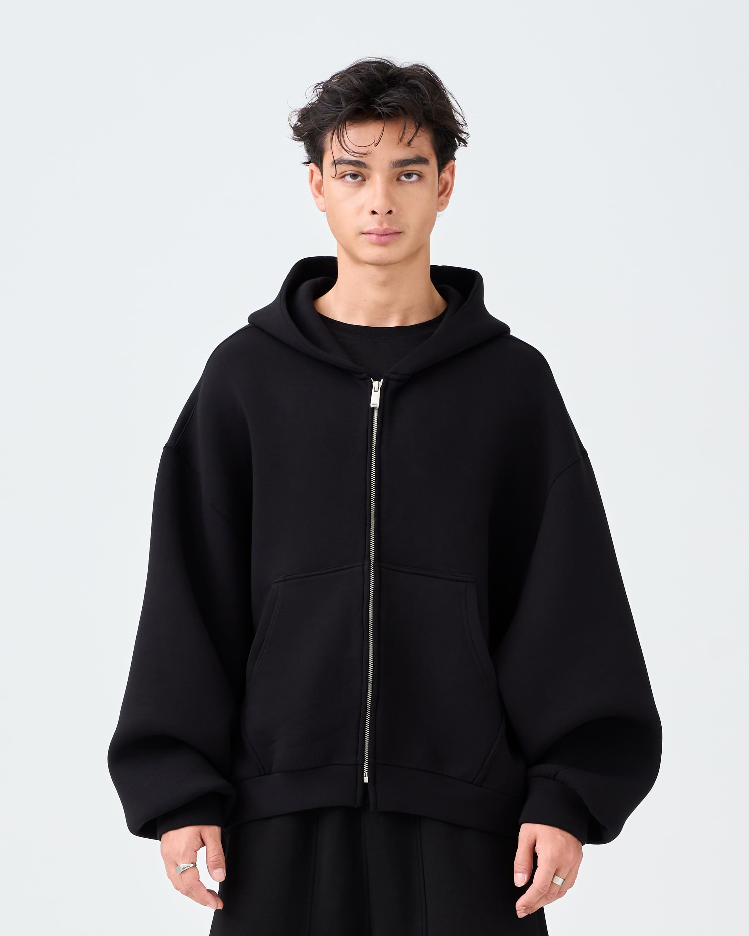 A relaxed zip-up jacket defined by soft structure and subtle volume. Designed to layer effortlessly while maintaining a clean, composed silhouette.